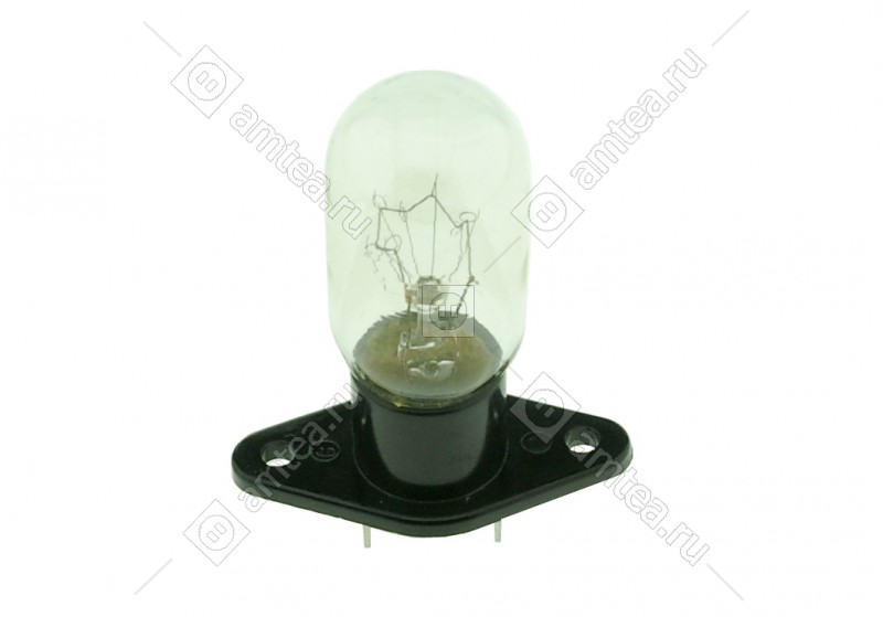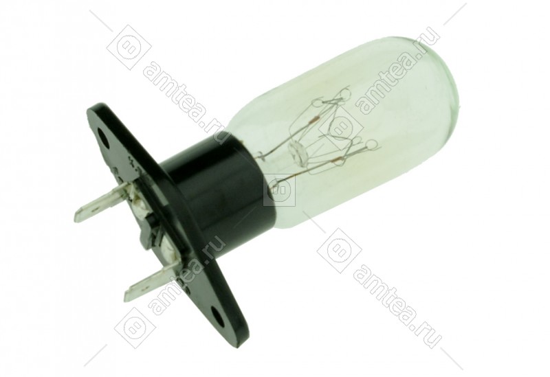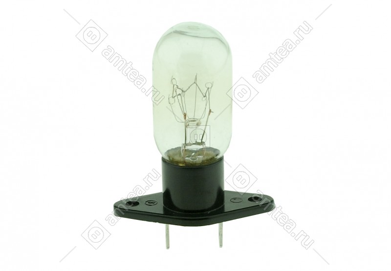 Лампочка для микроволновой печи. Мощность 25 Ватт при напряжении питания 240 Вольт. Электрические выводы расположены параллельно друг другу, прямо, расстояние между клеммами 18 мм. Универсальная запчасть.