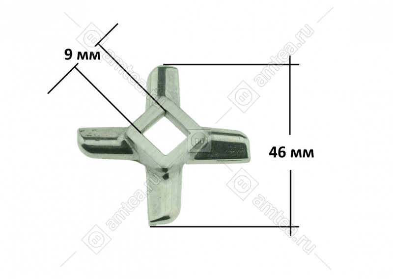 Нож: четырехгранник, D = 46 мм, сторона квадрата посадки = 9 мм