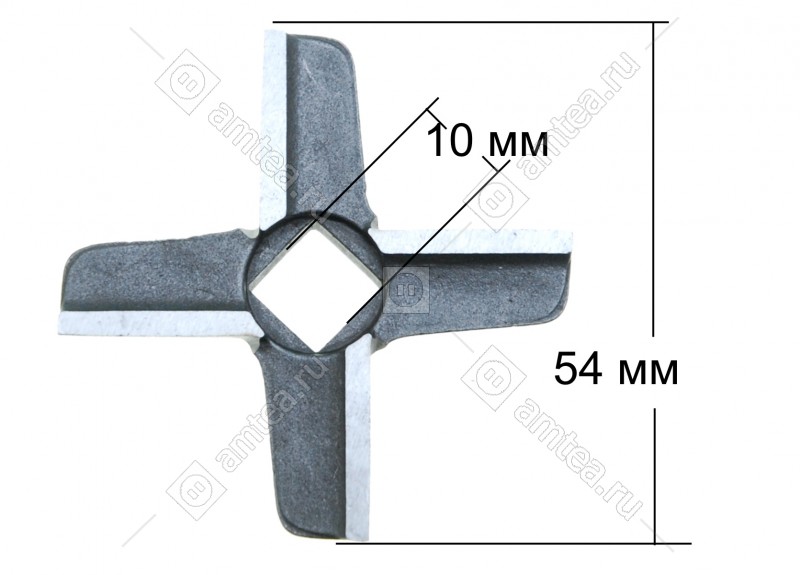 Ширина размаха лопастей 55 мм. Сторона внутреннего отверстия 10 мм. Толщина ножа 9 мм