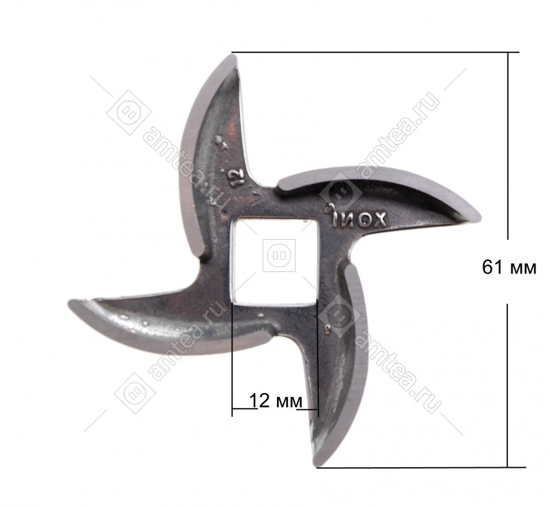Ширина размаха лопастей 61 мм. Сторона внутреннего отверстия 12 мм.