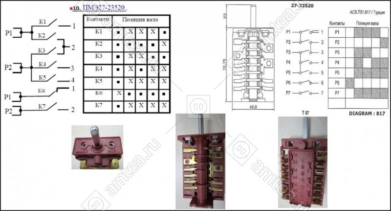 Чтобы купить Купить Переключатель режимов духовки ПМЭ 27-23520 (5 позиционный, вал - 23 мм) (AC8-T07-817) в Одинцово : цена, характеристики в магазине Амтеа | в Одинцово Вам необходимо выбрать необходимое количество товара на ближайшем складе и нажать кнопку "В Корзину".
