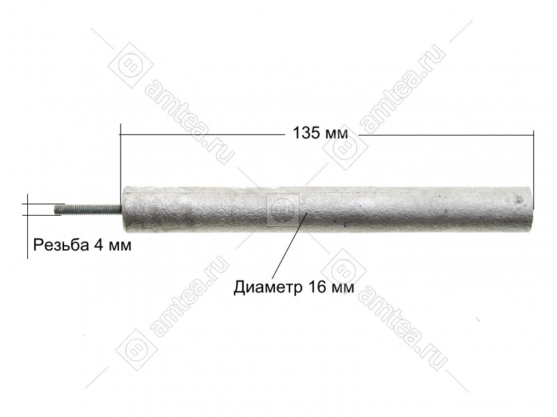 Анод – это тонкий круглый стержень, на который нанесен слой магниевого сплава. В центре этого стержня находится резьбовая шпилька М4, М6, М8 и тд.при помощи которой он крепится рядом с ТЭНом.Задача анода – предотвращение образования накипи на ТЭНе. При нагревании воды накипь образуется в результате выпавших в осадок солей тяжелых металлов. За счет повышенной активности магния они вступают в реакцию с ним, а не с железом, из которого сделаны стенки бака. Плотная, как камень, накипь, делается рыхлой, отделяется от стенок бака и ТЭНа и хлопьями осаждается на дно. Мягкую накипь легко удалить во время чистки прибора.